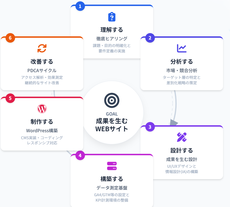 - ヒアリングと分析に基づいて、 あなたのビジネスに最適な戦略を設計します。 単なる「きれいなサイト」ではありません。