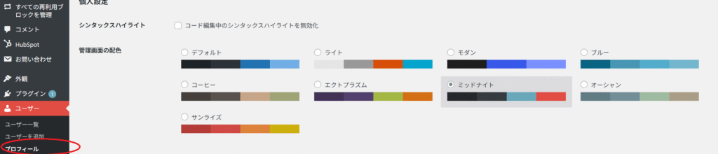 実は、WordPress管理画面の配色は8種類から選べるんです。