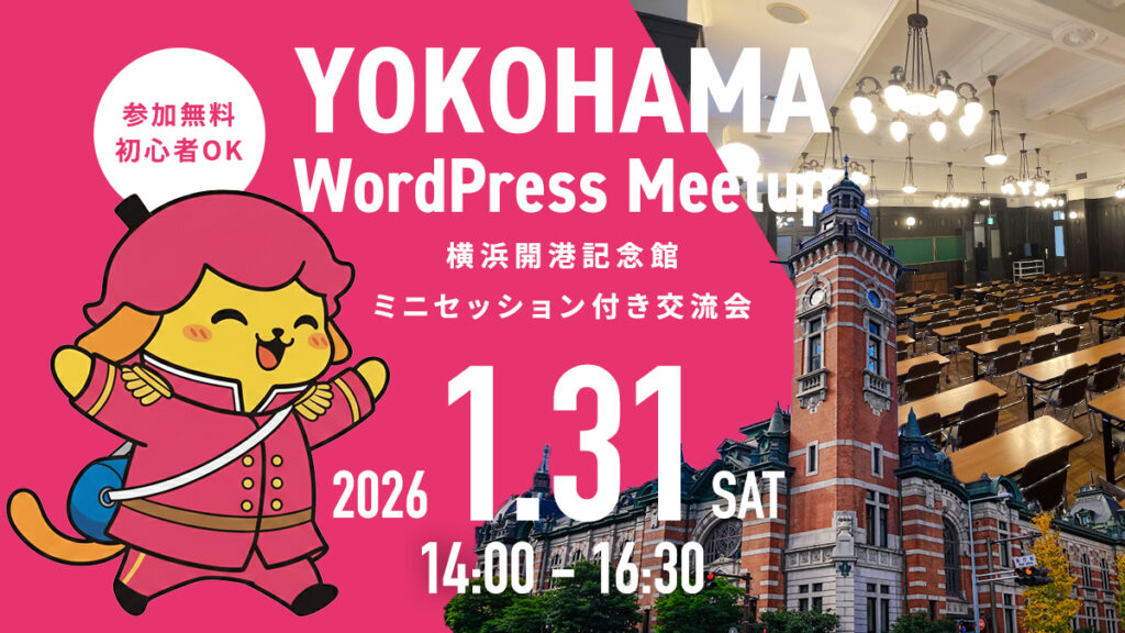 2026年1月31日、横浜市開港記念会館にて開催された「横浜WordPress Meetup #38」に登壇させていただきました。歴史あるレンガ造りの建物に50名近い参加者が集まり、WordPressとWebの未来について熱いセッションが交わされた一日となりました。